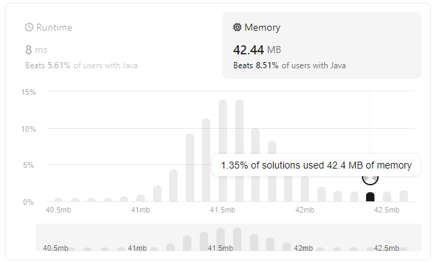 This strategy solves the problem “Reverse Prefix of Word”, taking 8ms to execute and wasting 42.44 MB of memory. See the numbers below: