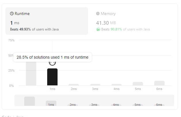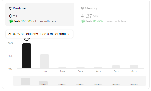 This strategy solves the problem “Reverse Prefix of Word”, taking 1 ms to execute and wasting 41.30 MB of memory. See the numbers below: